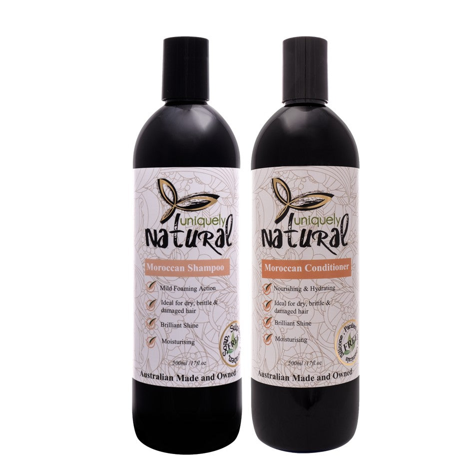 Transform your hair care routine with our Moroccan Shampoo and Conditioner Combo Pack ,the perfect value bundle your hair will love. Enriched with pure argan oil, this best-selling duo deeply hydrates and nourishes, leaving your hair soft, silky, and full of shine. The gentle shampoo cleanses without harsh chemicals, while the conditioner detangles, repairs, and restores bounce to dry or damaged strands. Infused with a hint of exotic vanilla bean, it not only cares for your hair but also delivers a spa-like experience at home. Perfect for all hair types, this natural formula is cruelty-free, eco-friendly, and proudly Australian Made and Owned . Save more with this combo and give your hair the moisture and strength it deserves . Shop now for beautiful results.